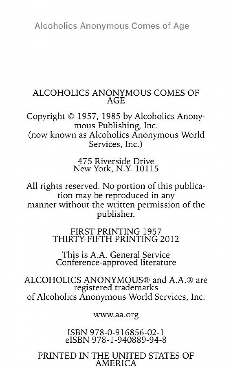 Alcoholics Anonymous World Services, Inc. New York, N.Y.